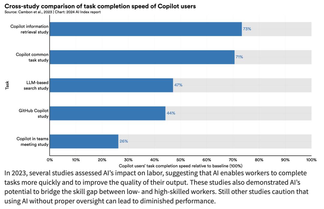多项研究表明,AI能够提高上班族的效率并提升工作质量,甚至能缩小低技能工人和高技能工人之间的技能差距。然而,也有一些研究表明,如果不对AI的使用进行适当的监管,可能会导致上班族的绩效下降。